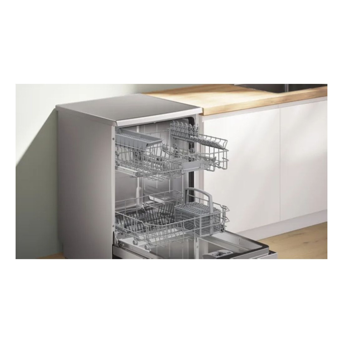 Lavavajillas en acero inoxidable con capacidad para 13 servicios y altura de 845 mm. Incorpora tecnología EcoSilence para un funcionamiento silencioso y sistema AquaStop para máxima seguridad. Con programas automáticos y opción de media carga, se adapta a tus necesidades diarias sin complicaciones.