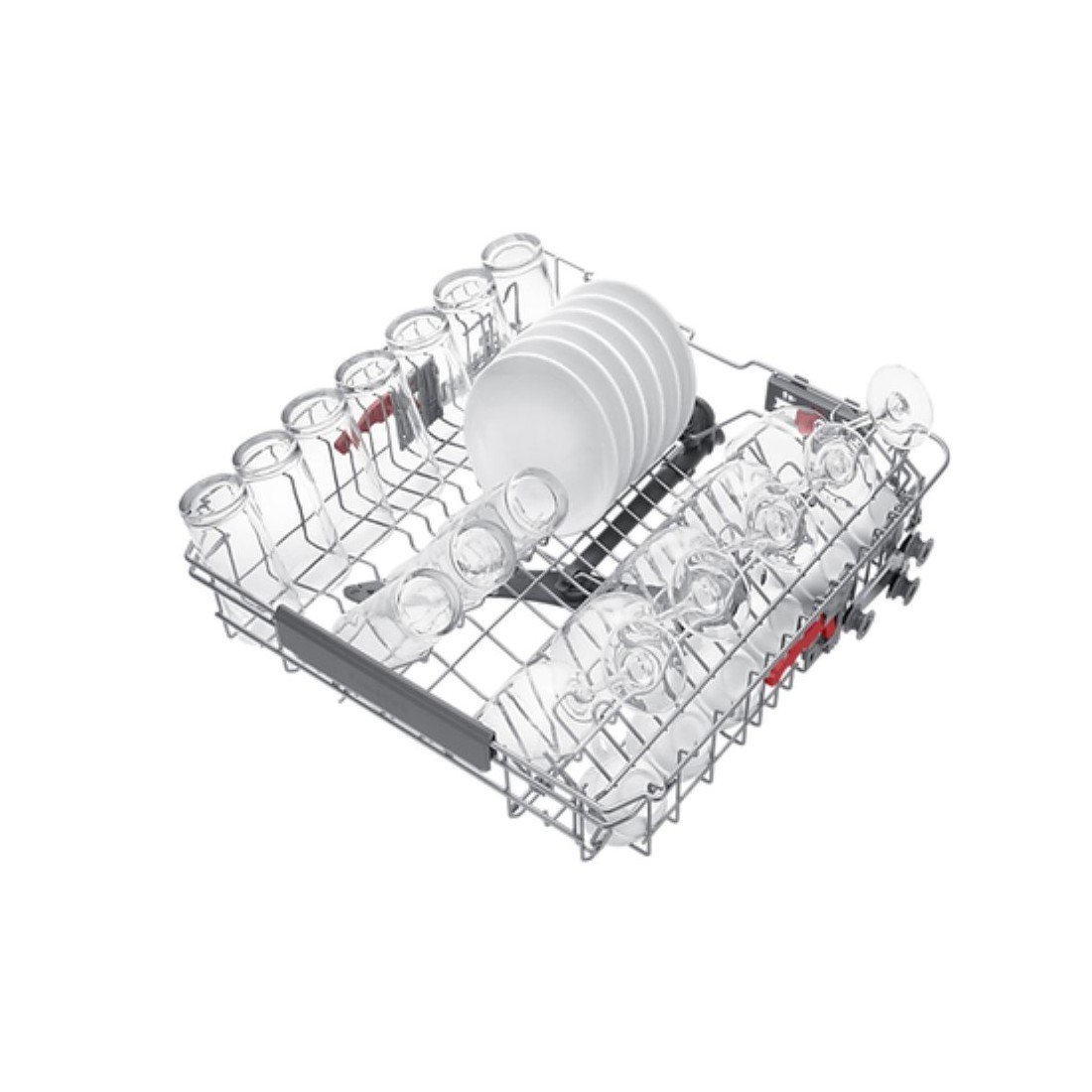 Dispone de tres cestas, con altura ajustable en la superior. El sistema de raíl ligero permite deslizar las bandejas sin esfuerzo, incluso cuando están llenas. También incluye función de media carga, ideal para lavados rápidos y sostenibles.