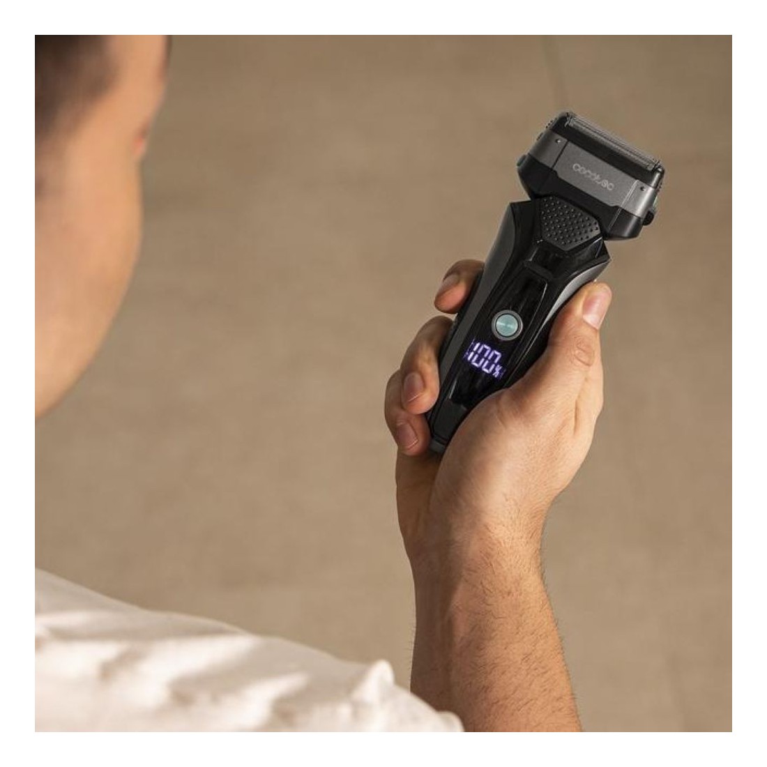 La pantalla integrada muestra el nivel de batería y recordatorios de limpieza, para que siempre tengas tu afeitadora lista y en perfecto estado.