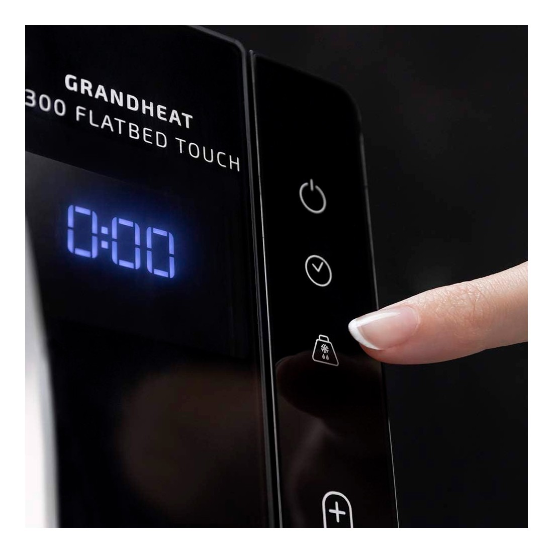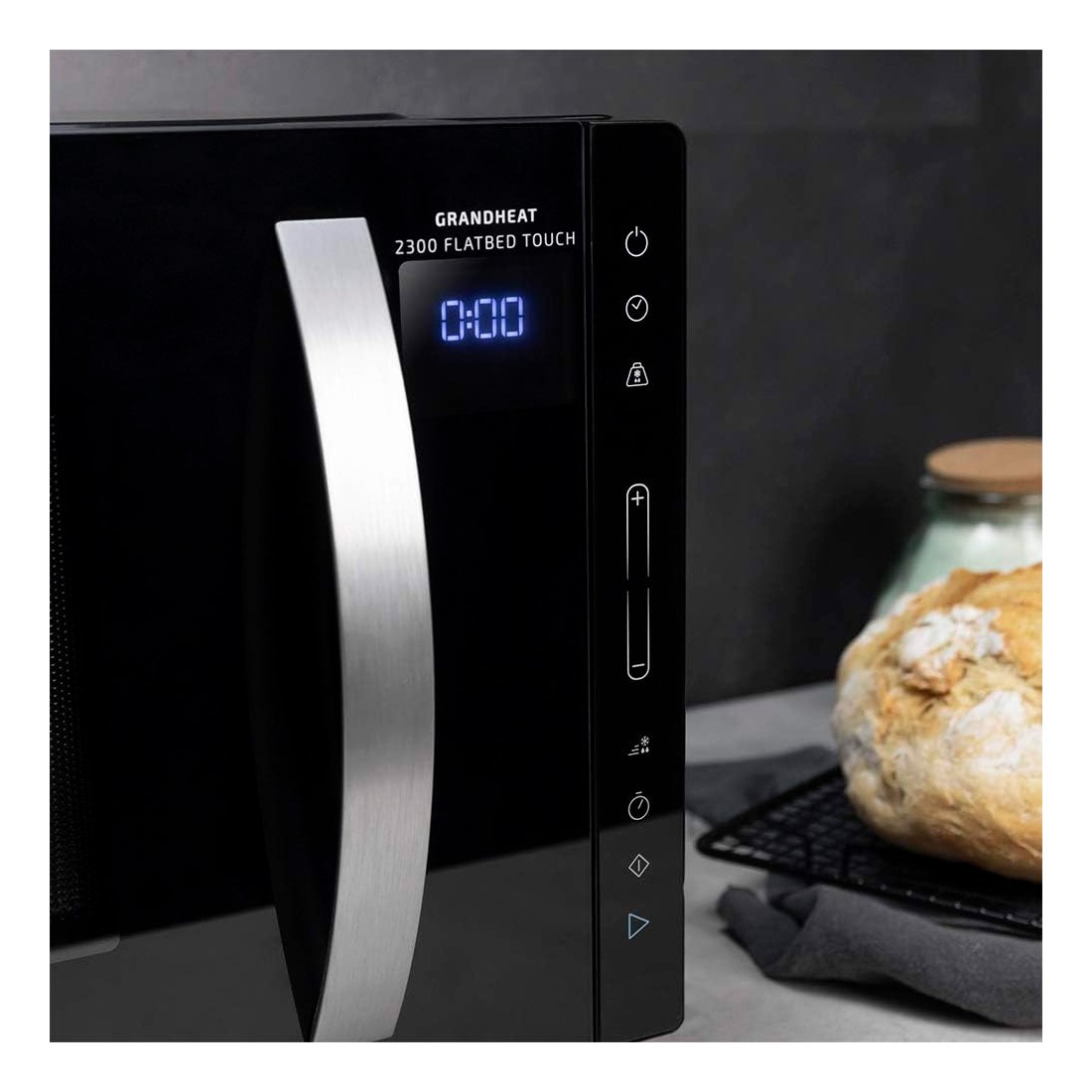 El GrandHeat 2300 Flatbed Touch Black redefine la experiencia de cocinar con su diseño sin plato, permitiéndote aprovechar al máximo sus 23 L de capacidad. Su diseño compacto y cavidad plana sin plato giratorio te brinda la libertad de utilizar recipientes más grandes y de diversas formas, adaptándose perfectamente a cualquier cocina.