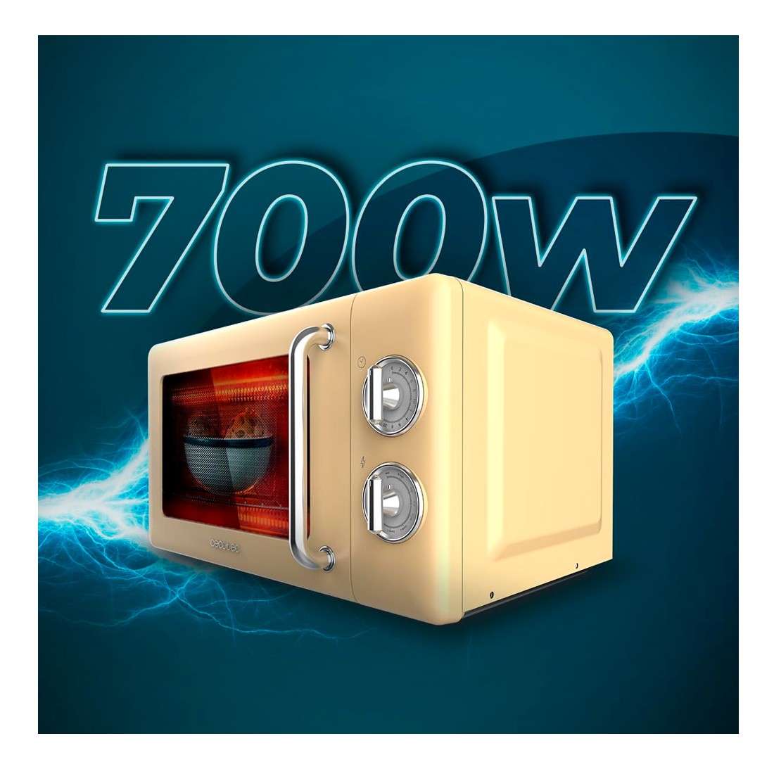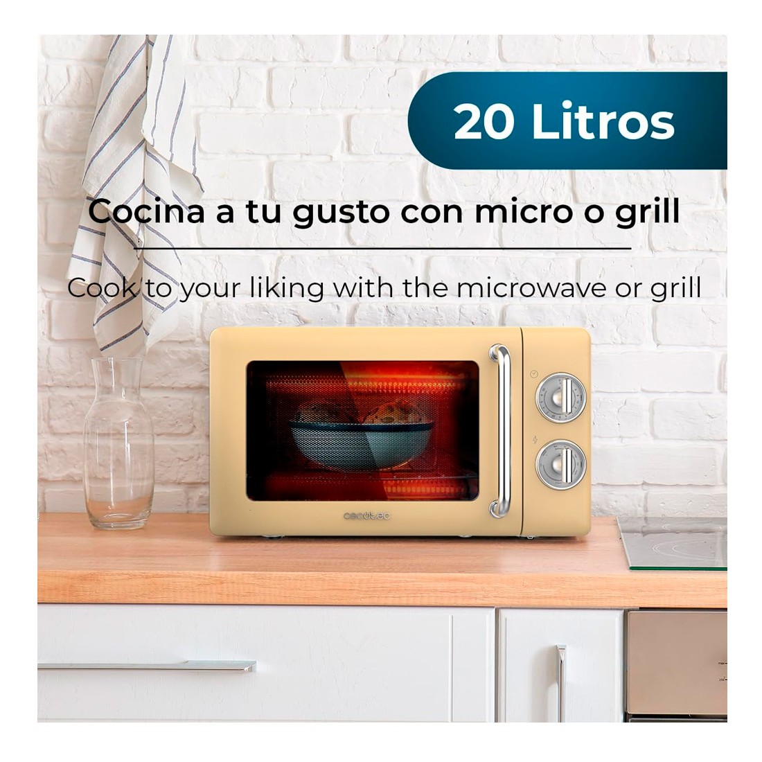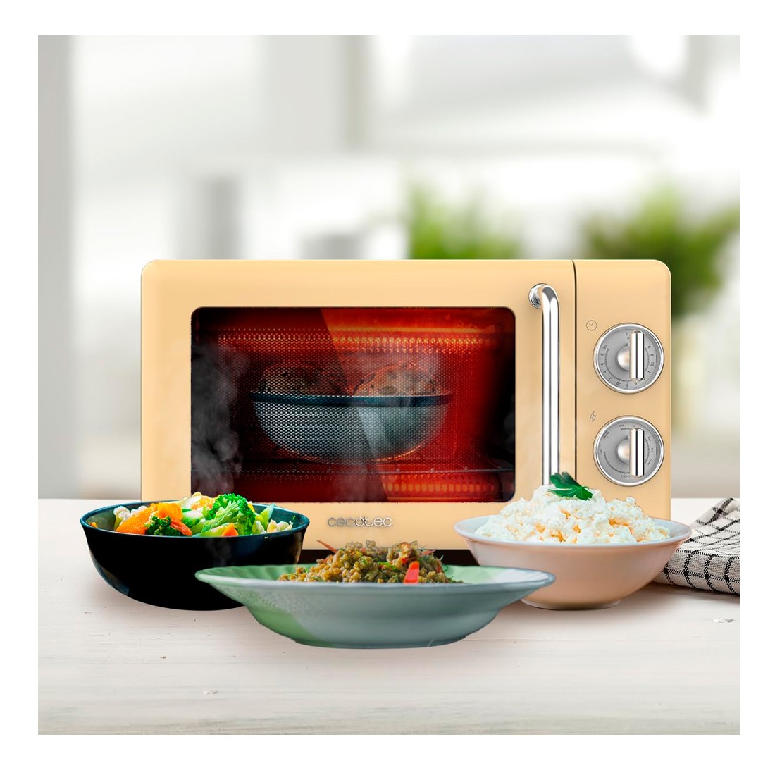 Microondas Libre Instalación - Cecotec ProClean 3110 Retro, 700 W, 20 litros, Grill, Amarillo