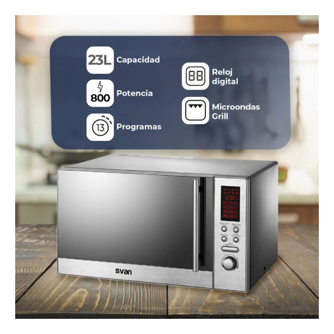 Microondas Libre Instalación - SVAN SVMW823GDX, Inox, 23L, Grill
