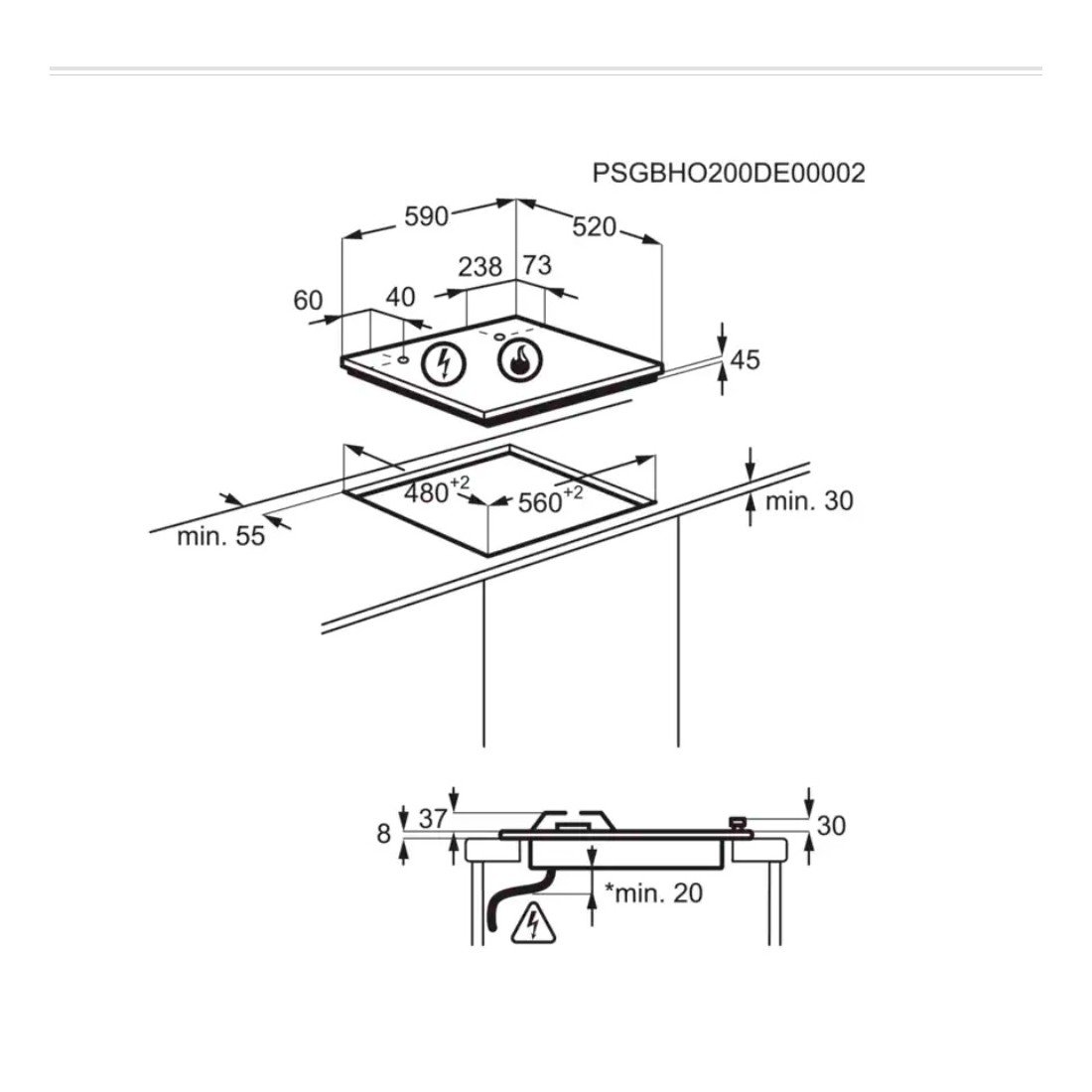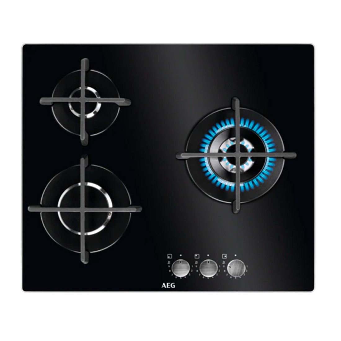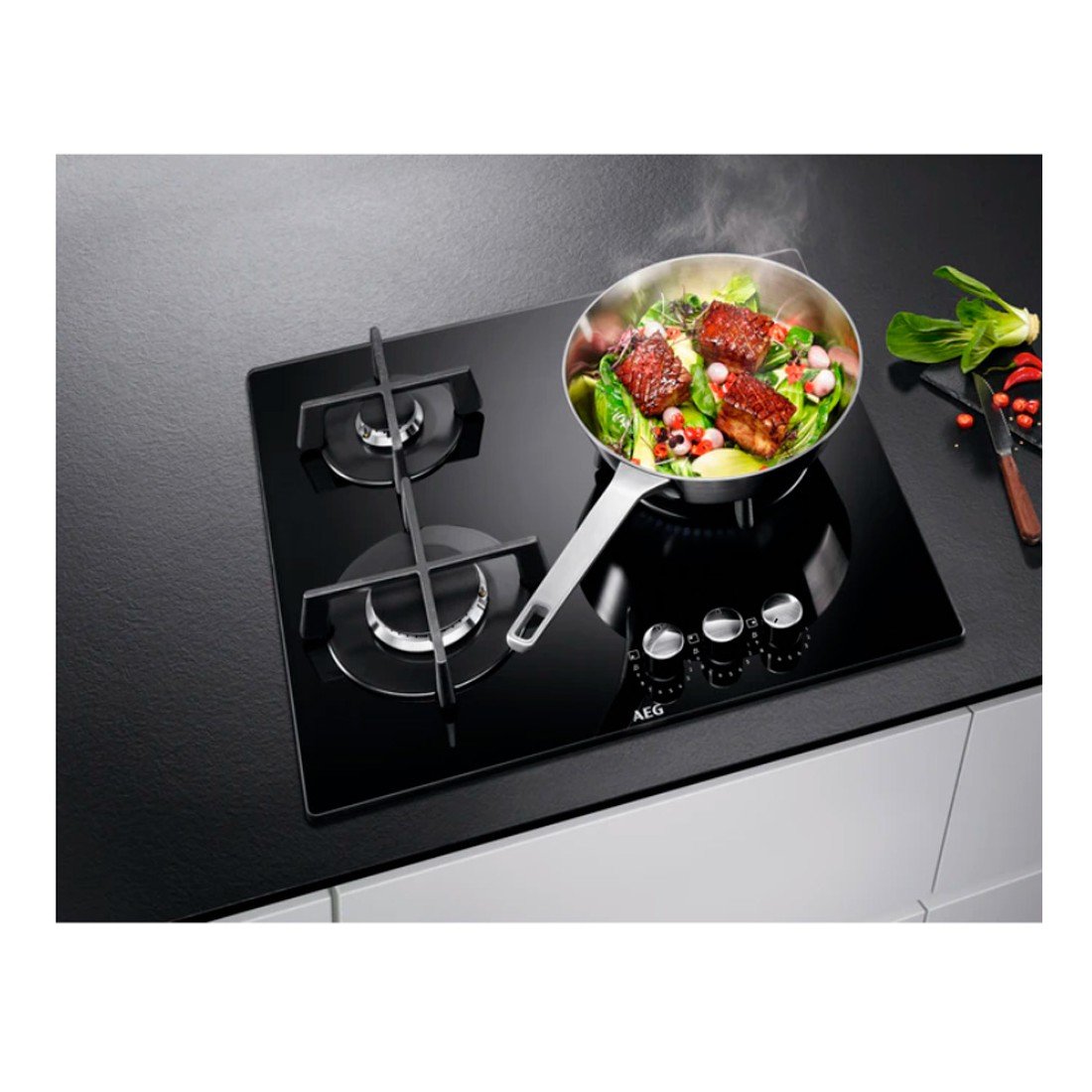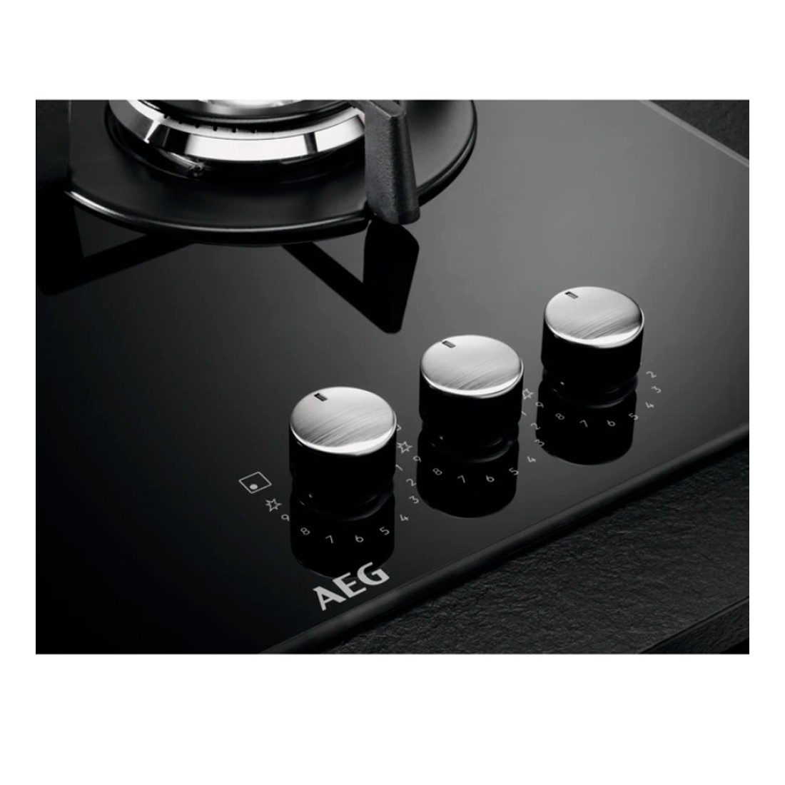 Placa Gas - AEG HKB63320NB, Tres Fuegos, Cristal Negro, 60 cm