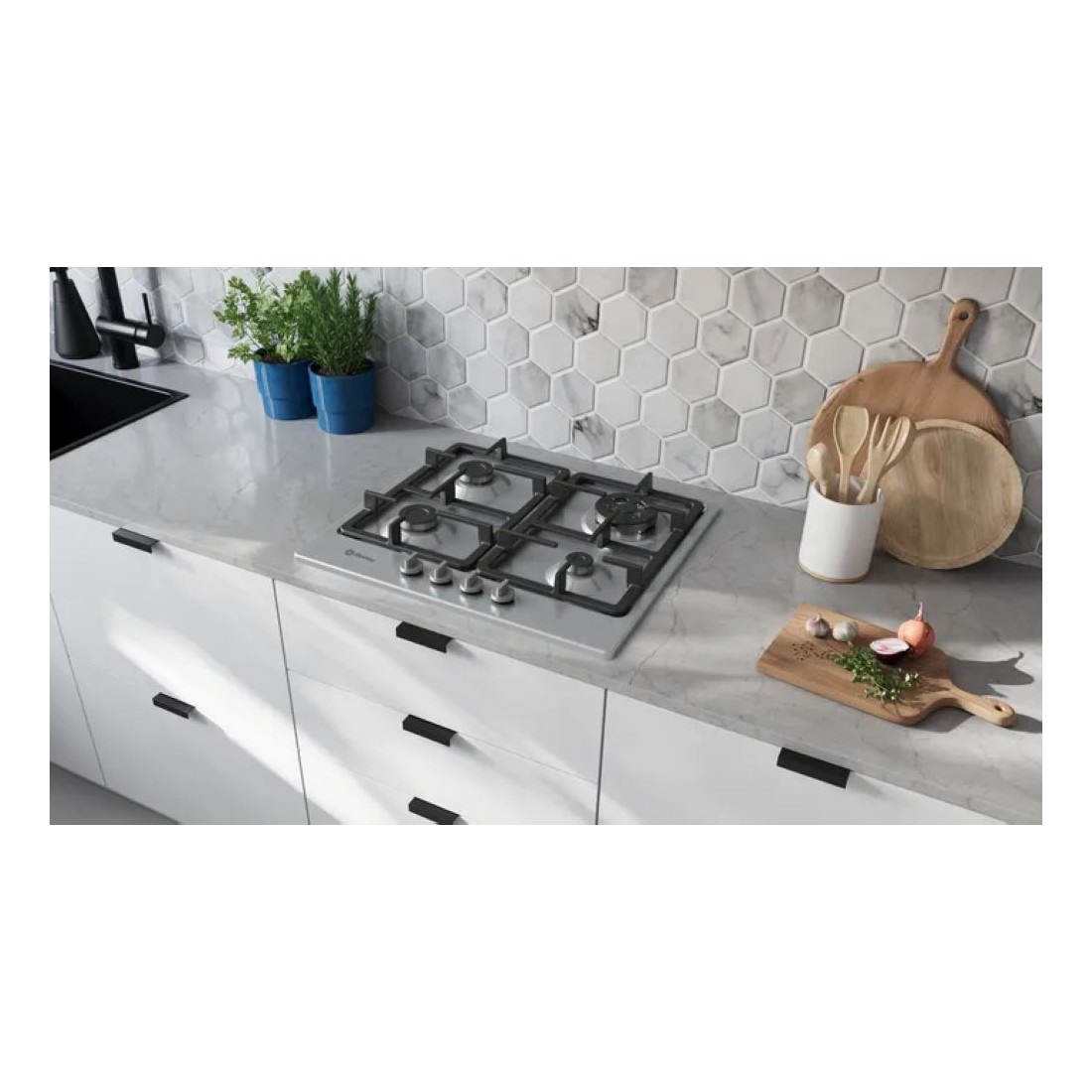 Esta encimera combina el rendimiento del gas con detalles que facilitan muchísimo el uso diario. Sus cuatro quemadores cubren desde recetas rápidas hasta elaboraciones más exigentes, incluyendo un potente fuego wok diseñado para quienes necesitan un extra de intensidad. El acabado en acero inoxidable y las parrillas de hierro fundido le dan presencia y estabilidad, transmitiendo la sensación de estar ante una placa sólida y duradera. Es una opción ideal si buscas rapidez, control y un manejo muy cómodo.