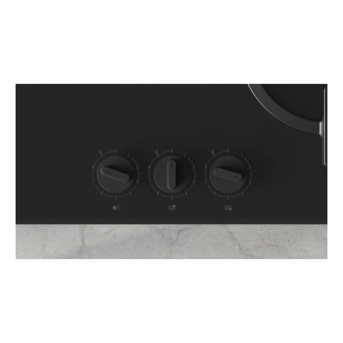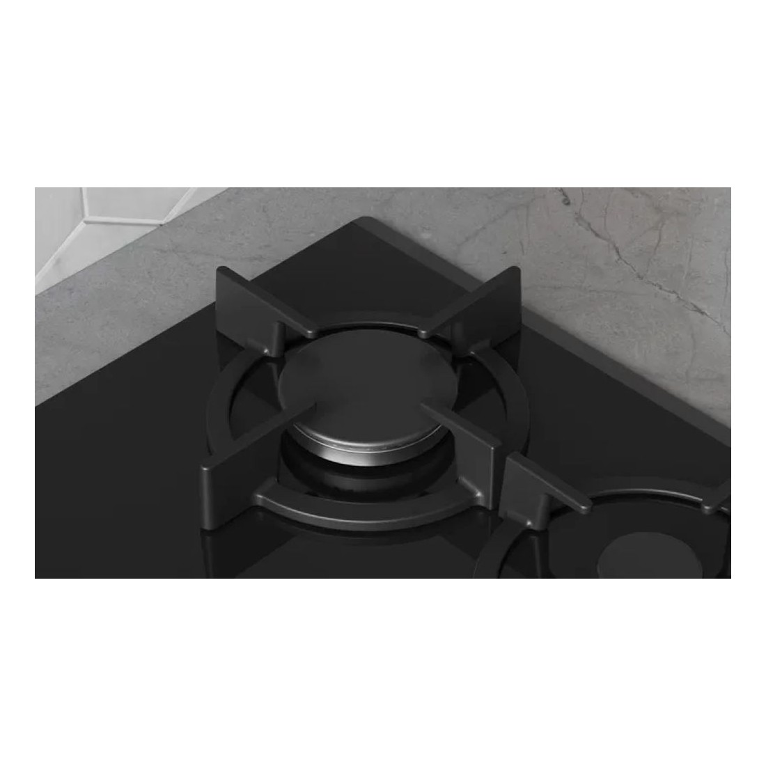 Esta placa de gas combina un cristal negro resistente con tres fuegos muy bien distribuidos, incluido un potente quemador Wok que facilita recetas rápidas y preparaciones que necesitan intensidad. Su diseño encaja de forma limpia en encimeras de 60 cm y aporta un toque elegante que transforma cualquier cocina. Es una opción ideal para quienes buscan una mezcla equilibrada entre estética moderna y una experiencia de cocinado tradicional.