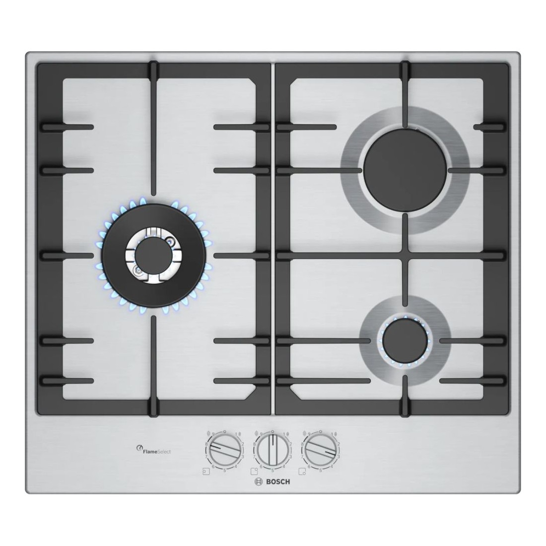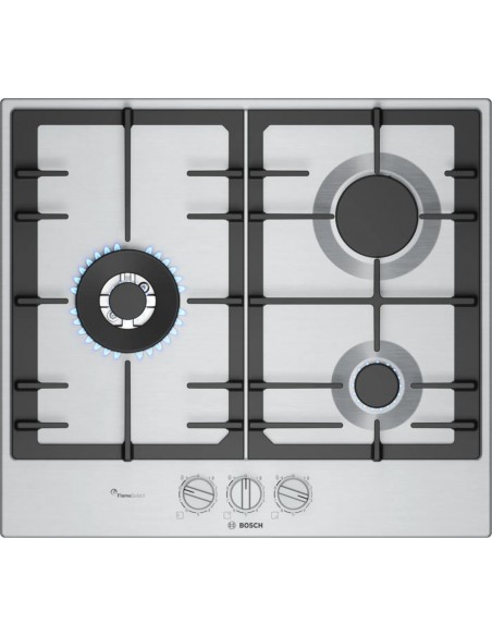Placa Gas Natural - BOSCH PCC6A5I90, Inox, 3 Zonas