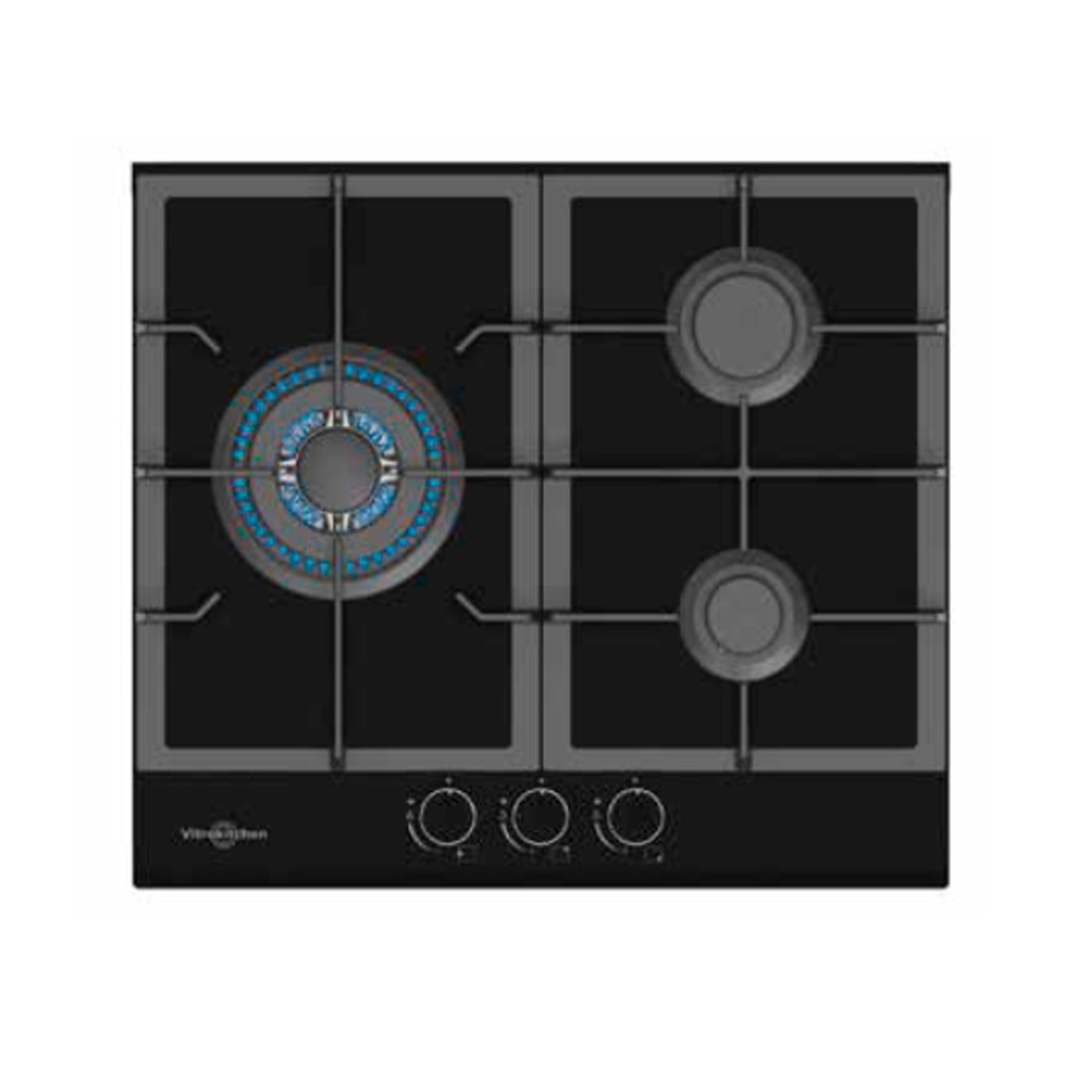 Placa Gas - Vitrokitchen CG630NN, Tres Fuegos, 60 cm, Natural, Inyectores Gas Butano, Cristal templado negro