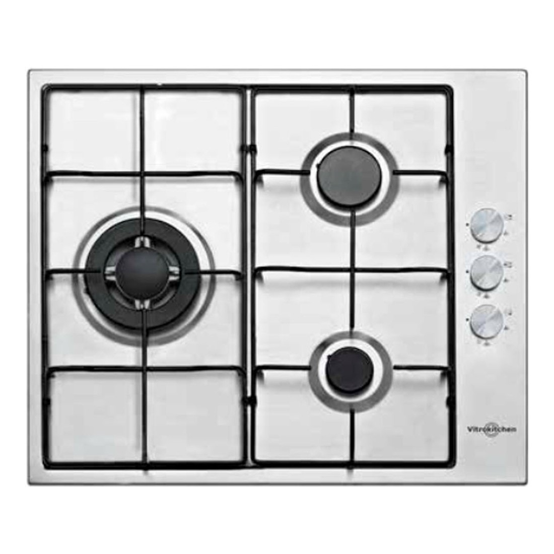 Placa Gas - Vitrokitchen EN630LIB, Tres Fuegos, 60 cm, Butano, Inyectores Gas Natural, Inox