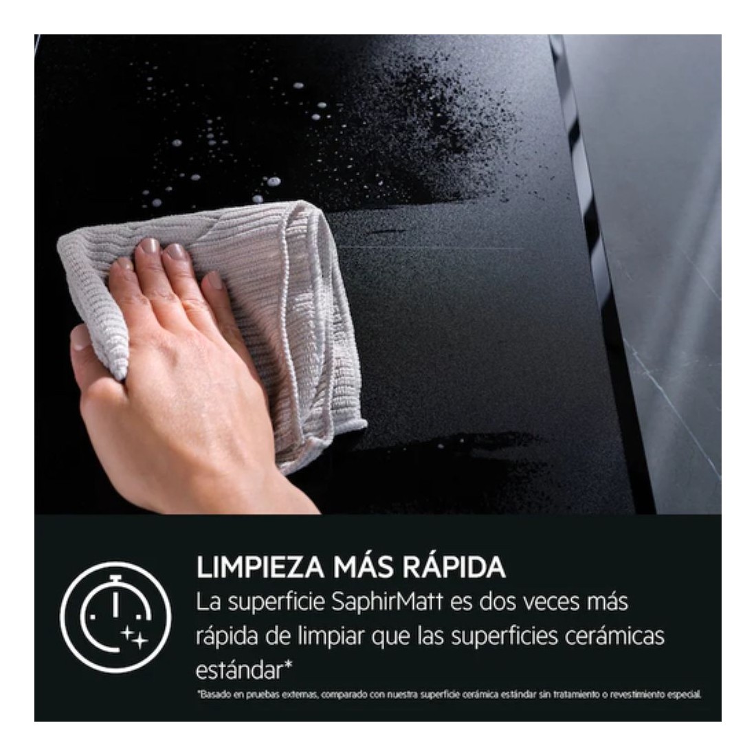 El cristal SaphirMatt proporciona una protección superior contra arañazos y manchas, manteniendo la placa como nueva por más tiempo. El elegante acabado negro mate es resistente a huellas dactilares y fácil de limpiar.
