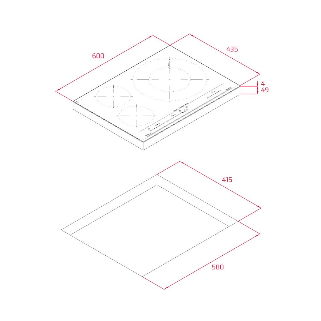 Placa de Inducción con Touch control Multislider; 3 zonas de cocción; ancho de 60 cm; profundidad de 43 cm; color negro y bisel frontal.