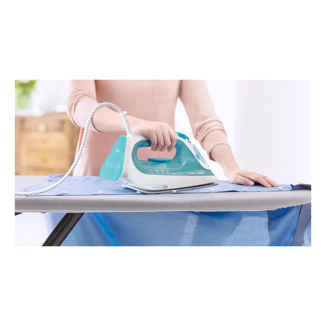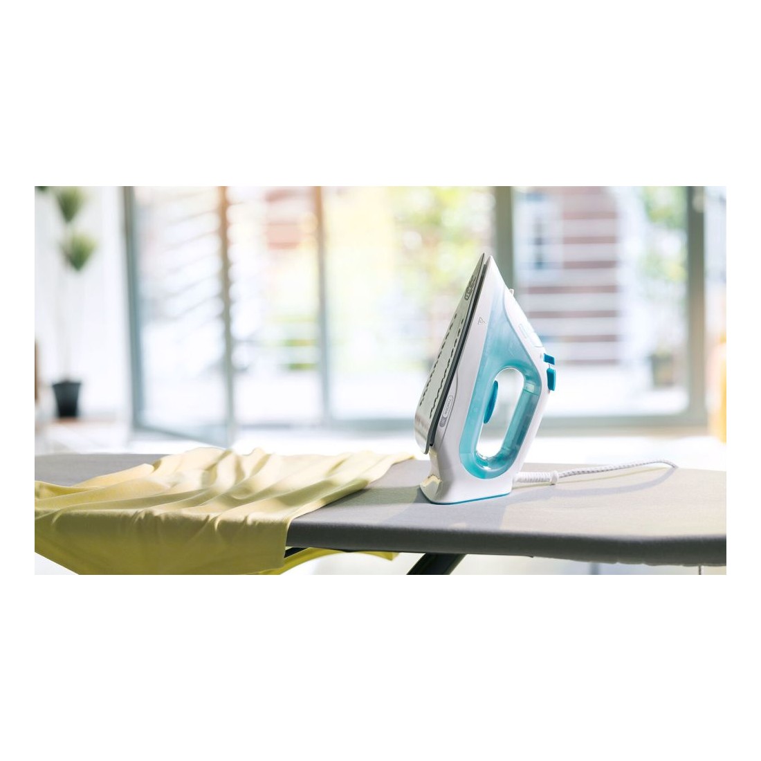 Esta plancha a vapor combina un diseño moderno en tonos turquesa y blanco con una potencia de 2350 W, pensada para quienes buscan resultados rápidos y profesionales en casa. Su suela cerámica asegura un deslizamiento suave sobre cualquier tejido, evitando enganches y cuidando la ropa. Además, el vapor continuo de 45 g/min y el golpe de vapor de 150 g/min permiten eliminar las arrugas más difíciles sin esfuerzo.