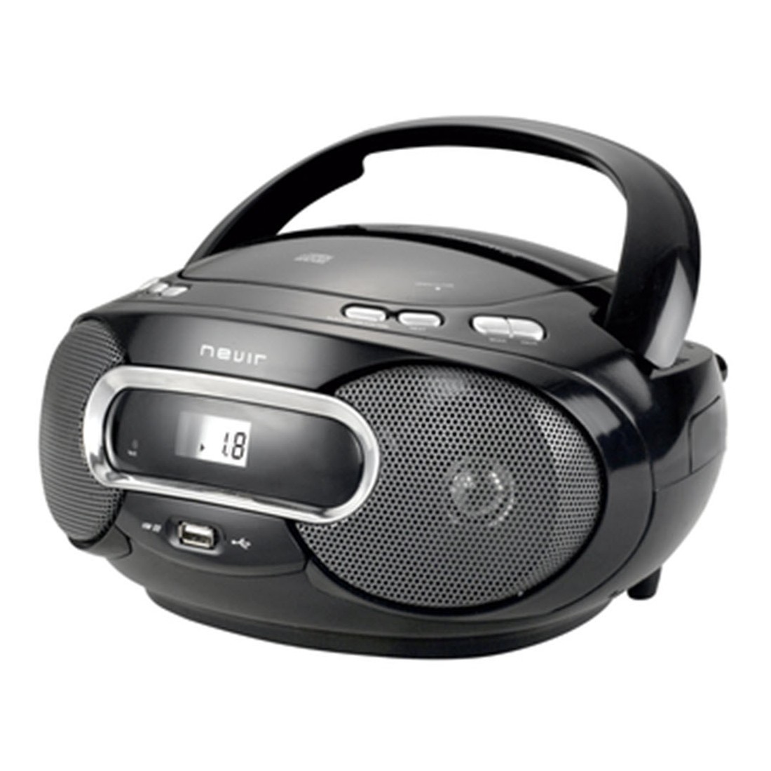 La radio portátil en color negro destaca por su tecnología avanzada de reproducción, permitiendo escuchar música desde CD, MP3 y USB en cualquier momento. La calidad de sonido se complementa con un diseño moderno que encaja en cualquier ambiente y hace que cada uso sea una experiencia gratificante.