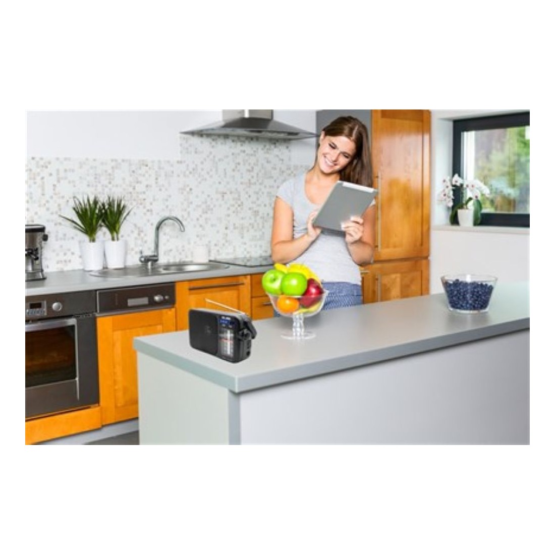 Las medidas de 220 mm de ancho, 50 mm de profundidad y 165 mm de altura hacen que esta radio portátil se adapte fácilmente a cualquier rincón, garantizando comodidad y funcionalidad.