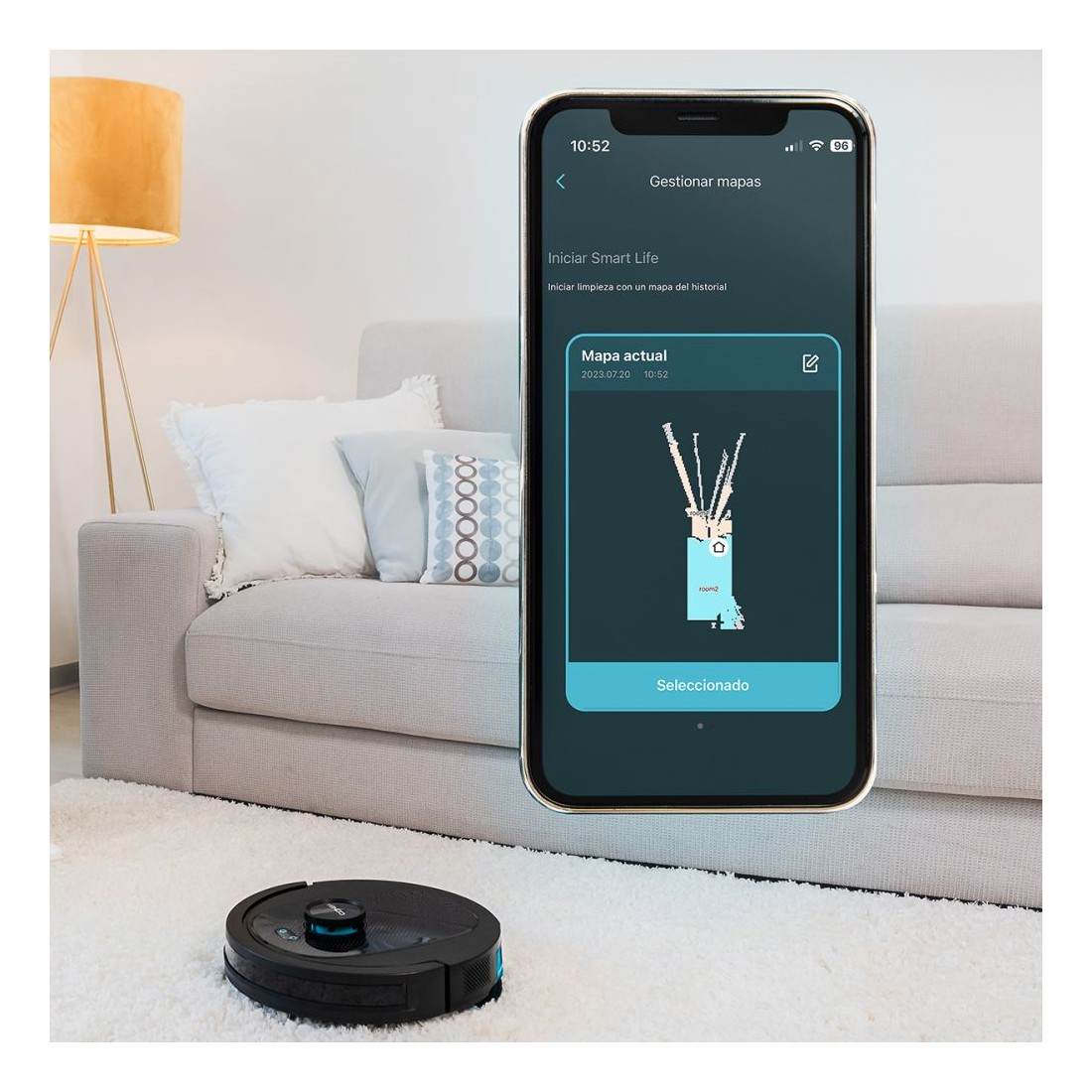 Gestiona todas las funciones del robot desde la app, donde podrás programar limpiezas, consultar mapas y definir zonas. También es compatible con Alexa y Google Assistant, facilitando el control mediante comandos de voz. Esta conectividad permite una experiencia de limpieza más cómoda, moderna y adaptada al ritmo del día a día.