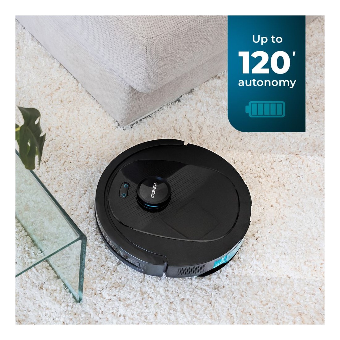 El Conga 8490 Ultimate Ultra Power tiene una altura de 9,5 cm y diámetro de 35 cm. Su batería de alto rendimiento ofrece una autonomía de hasta 170 minutos, ideal para limpiar grandes superficies sin interrupciones. Si se queda sin batería, la tecnología Total Surface 3.0 lo lleva de vuelta a la base para recargar y continuar desde donde lo dejó.