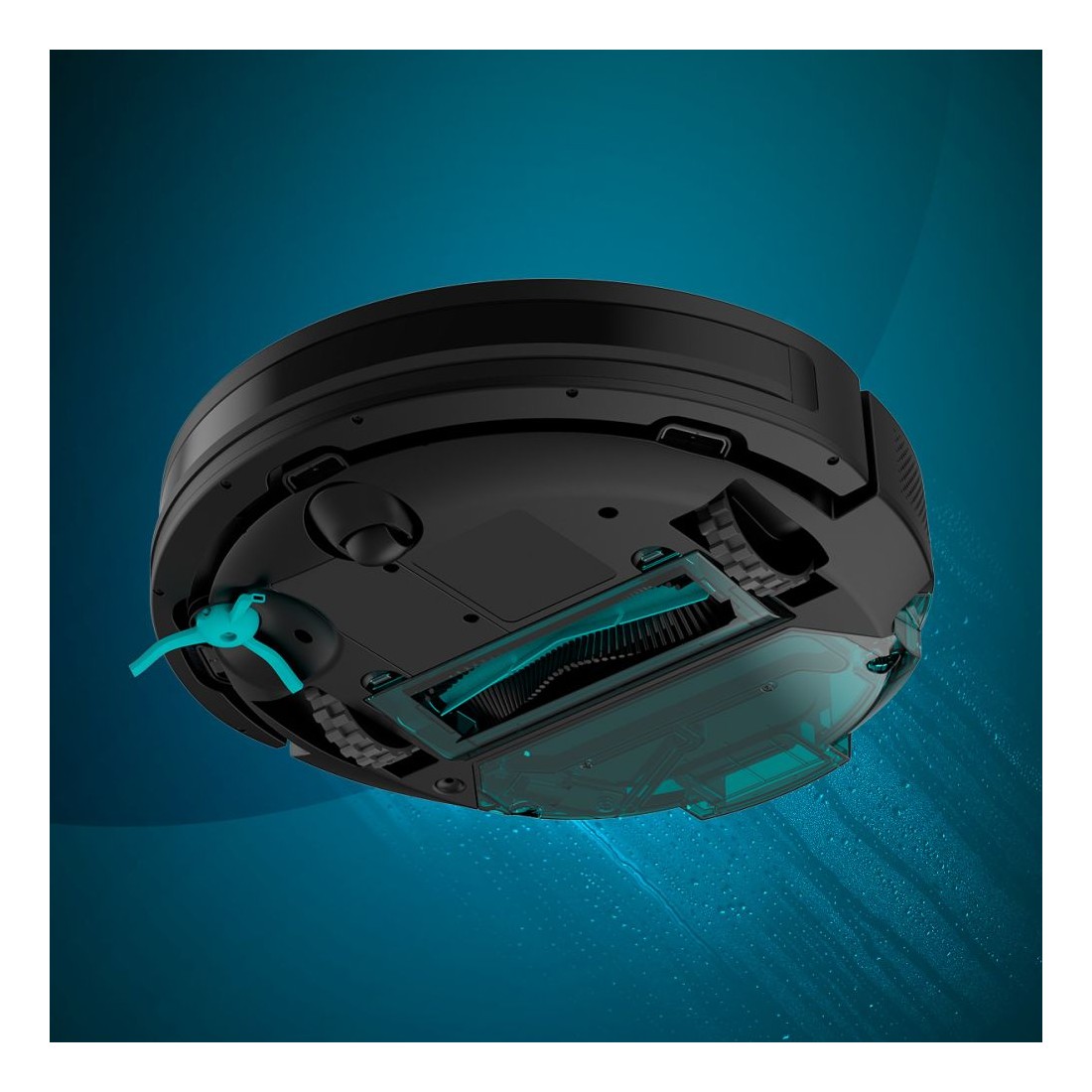 El robot tiene un tamaño ideal para llegar a todas partes, con una altura de 9,5 cm y un diámetro de 35 cm. Esto le permite limpiar bajo muebles o zonas de difícil acceso sin problema. Su diseño moderno y acabado en color negro lo hace perfecto para cualquier estilo de hogar, combinando funcionalidad y elegancia.