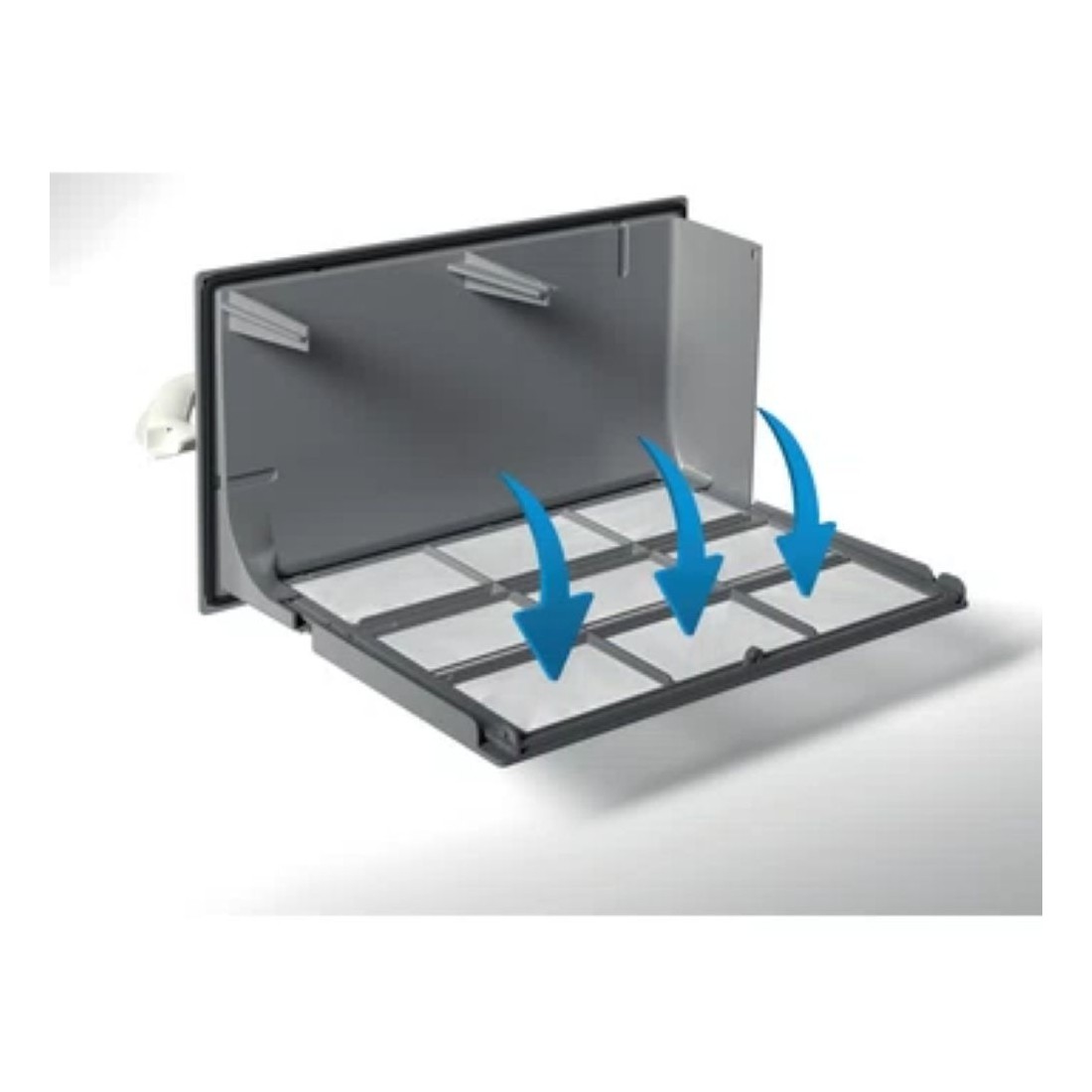 Altura: 849 mm – Anchura: 595 mm – Profundidad: 649 mm – Profundidad con puerta abierta: 1095 mm – Peso: 44 kg