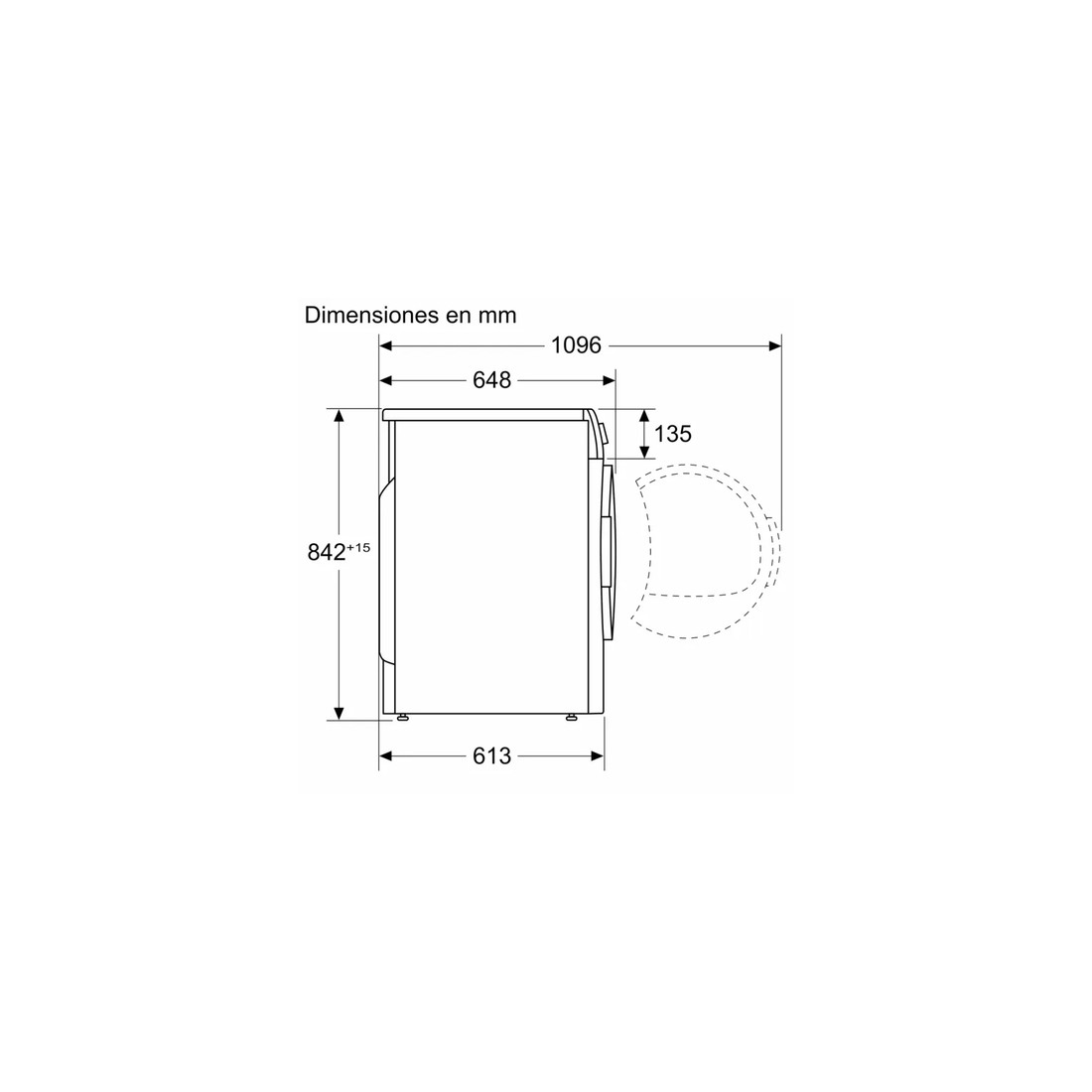Altura: 842 mm – Anchura: 598 mm – Profundidad: 613 mm – Profundidad con puerta abierta: 1096 mm