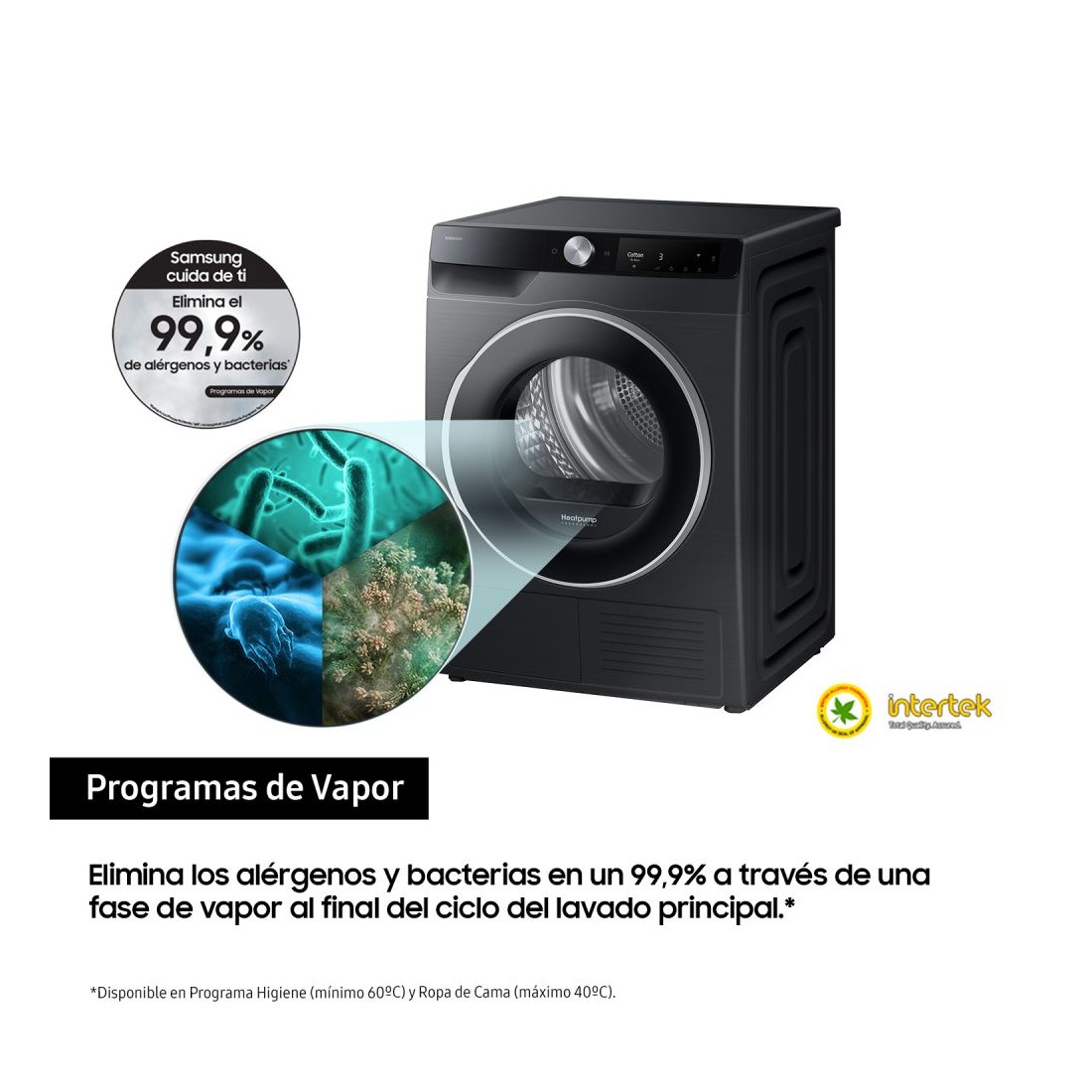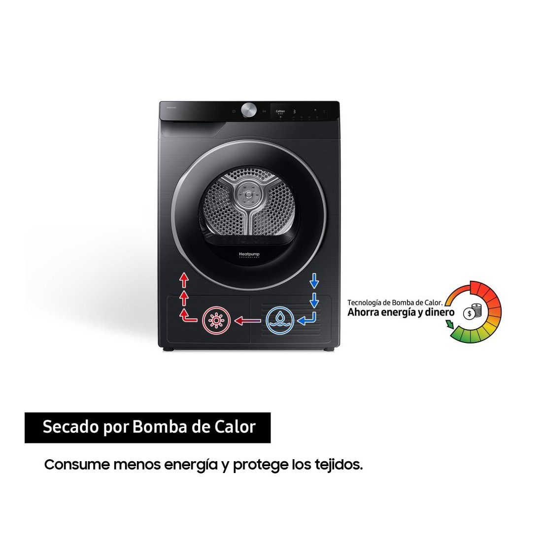 Secadora Condensación - SAMSUNG DV90T6240LB/S3, Bomba de Calor, 9Kg, Negro, Eficiencia C