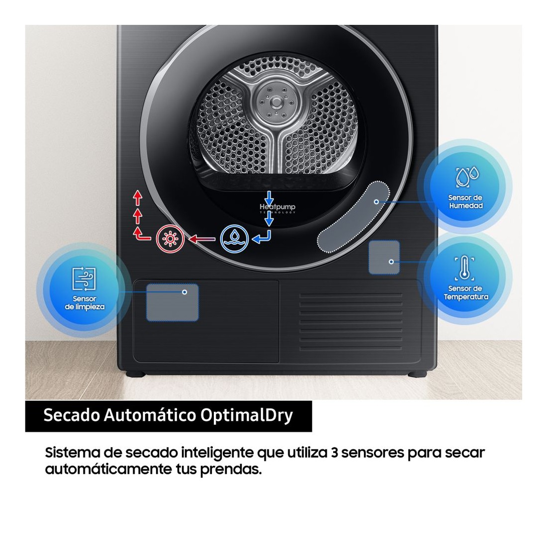 Secadora Secadora Samsung DV90T6240LB/S3 con rendimiento inteligente y eficiencia destacada