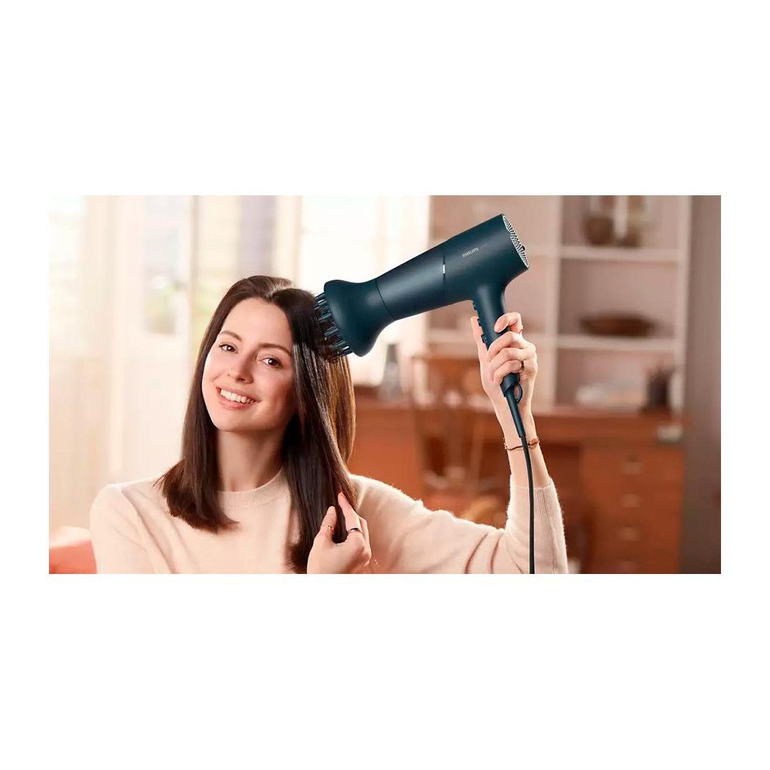 El botón de aire frío fija el peinado, mientras que las boquillas estrechas y ultraestrechas, junto con el difusor de volumen, permiten moldear el cabello con precisión para conseguir un estilo profesional y voluminoso.