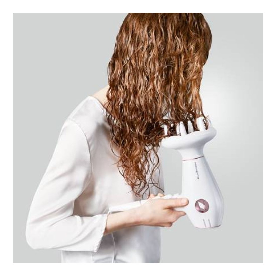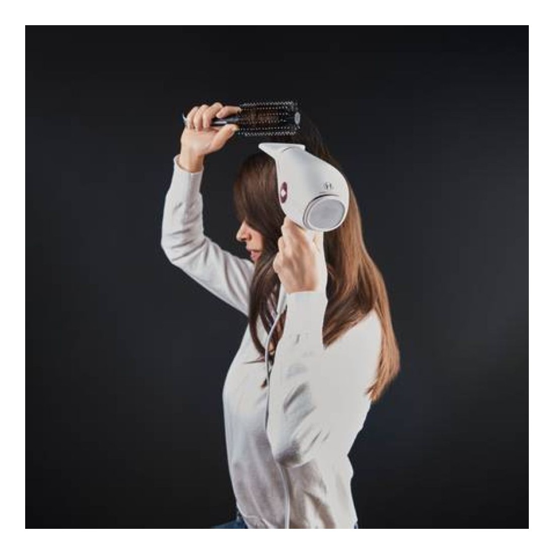 Incluye una boquilla concentradora para moldear las raíces y un difusor estándar para dar volumen. Además, el golpe de aire frío permite fijar el peinado para que dure más tiempo.