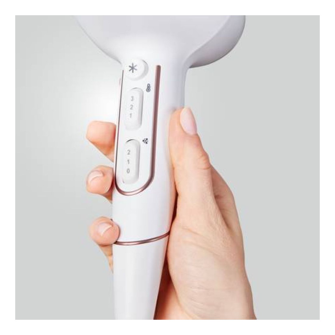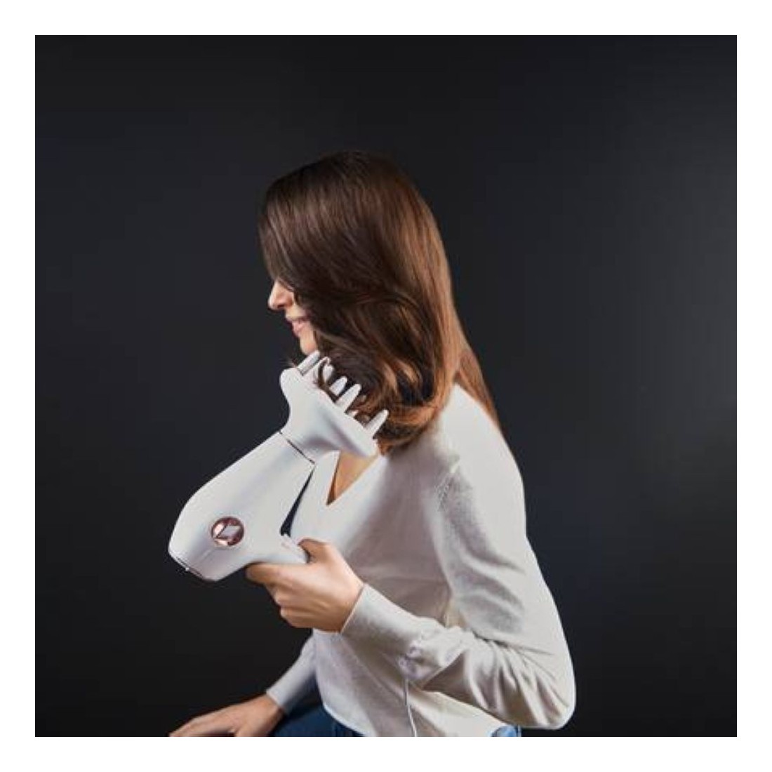 Su estructura ligera y compacta facilita el manejo, mientras que la tecnología amortiguadora del sonido lo convierte en un secador más silencioso. Ideal para quienes valoran la comodidad y la tranquilidad.