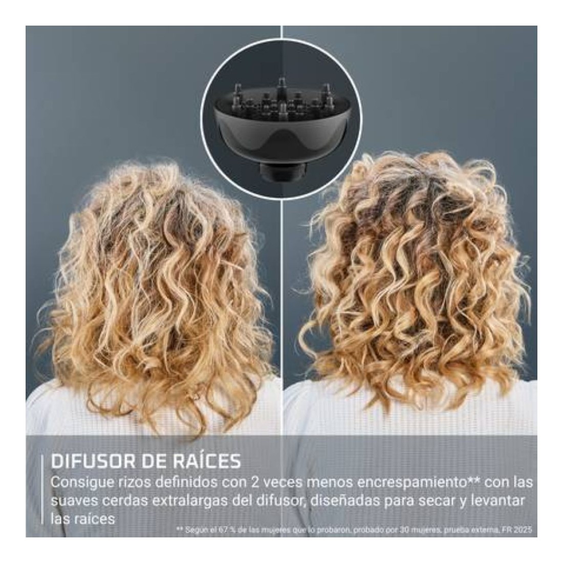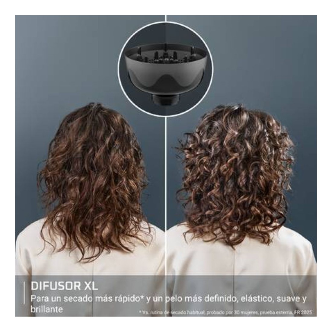 El flujo de aire simula el secado natural, reduciendo el encrespamiento y evitando la sequedad. Esto significa que tu cabello se mantiene hidratado y con una textura elástica, algo esencial para rizos sanos.