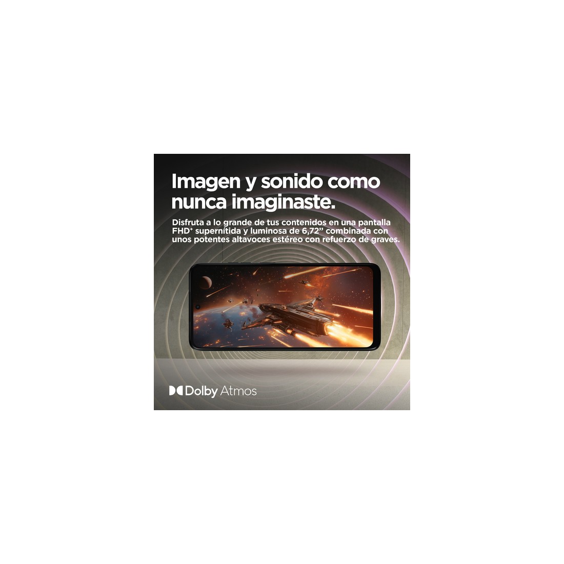 La pantalla FHD+ de 6,72 pulgadas ofrece imágenes brillantes y detalladas gracias a su compatibilidad con HDR10 y su densidad de 391 ppp. Con un brillo máximo de 1000 nits, garantiza una visibilidad óptima incluso en exteriores. El formato 20:9 proporciona un campo visual más amplio para disfrutar de vídeos, redes sociales y juegos.
