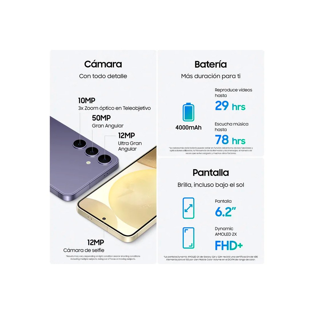 Experimenta la evolución del diseño con el Galaxy S24, que presenta un acabado mate elegante y resistente a las huellas, junto con una pantalla más amplia y bordes suavizados. Con One UI 6.1, tu experiencia será tan única como segura gracias a Samsung Knox.