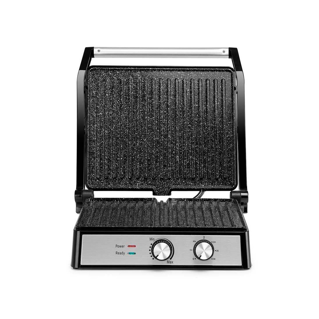 Gracias a su asa de tacto frío, manipular el GR 4580 mientras cocina es completamente seguro, evitando preocupaciones por posibles quemaduras. Además, cuenta con una bandeja recoge salsas que facilita su limpieza y un termostato regulable, ofreciendo control total sobre la potencia durante su funcionamiento.