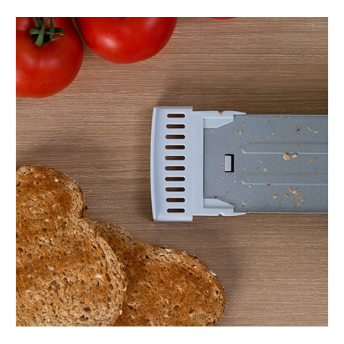 La bandeja para migas extraíble facilita la limpieza, mientras que la base antideslizante aporta seguridad. El botón de cancelación permite detener el proceso en cualquier momento.