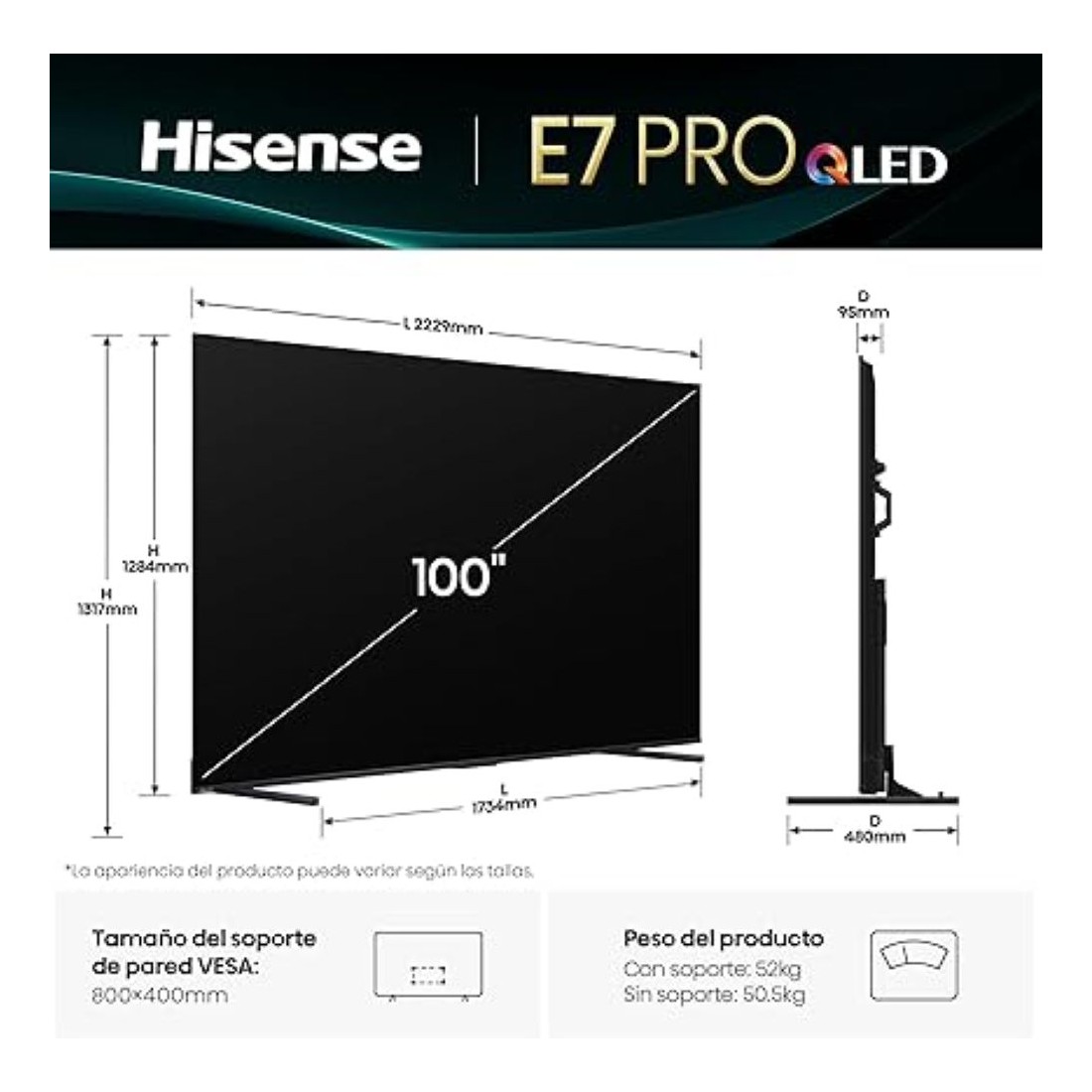 TV LED - HISENSE 100E7Q Pro, 100", 4K, UHD, Smart TV, Gaming