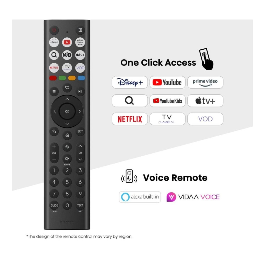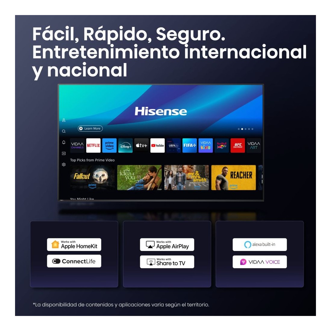 El sistema operativo VIDAA U8.5 permite acceder a plataformas como Netflix, Disney+, YouTube o Movistar+ de forma rápida y sencilla. La compatibilidad con Alexa y Apple AirPlay 2 te permite controlar el televisor con la voz o compartir contenido desde tu móvil. También incluye duplicación de pantalla, navegador web y guía electrónica de programación.