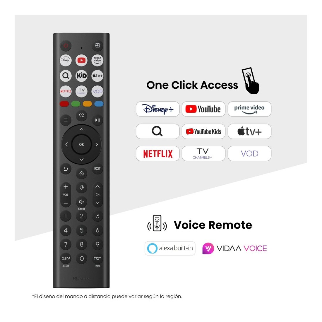 Este televisor LED de 50 pulgadas en color negro está diseñado para quienes buscan una experiencia de cine en casa sin complicaciones. Gracias a su tecnología Direct-LED y resolución 4K Ultra HD, cada imagen se muestra con una nitidez y profundidad que te atrapa desde el primer segundo. El sistema VIDAA U8.5 te permite acceder a tus plataformas favoritas como Netflix o Disney+ con solo unos clics.