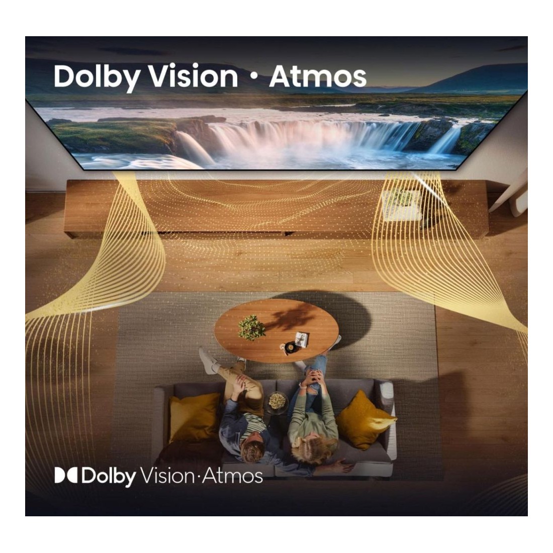A diferencia de otros televisores que se quedan cortos en graves, este modelo incorpora un pequeño subwoofer que aporta más profundidad al sonido. Esto se nota especialmente cuando hay efectos de acción o bandas sonoras con mucho cuerpo. La compatibilidad con Dolby Atmos y DTS:X ayuda a abrir el sonido hacia los lados y hacia arriba, para dar una sensación más inmersiva sin necesidad de una barra externa. Quien lo desee puede aún mejorar el sonido mediante eARC, pero de serie ofrece un rendimiento muy decente para uso diario.