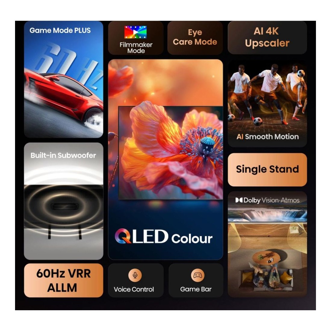 Uno de los puntos que más sorprende de este modelo es el uso de Quantum Dot, una tecnología que mejora el color de forma bastante visible para el usuario. En la práctica, esto significa que tonalidades como los rojos, verdes o azules se ven más definidos y naturales, evitando la sensación de color apagado típica de algunos televisores LED tradicionales. Cuando el contenido incluye paisajes, escenas de naturaleza o secuencias muy luminosas, el televisor responde con un brillo más equilibrado y con un contraste mucho más expresivo. Además, su compatibilidad con HDR10, Dolby Vision y HLG permite adaptar la imagen a cada película, consiguiendo resultados más fieles.
