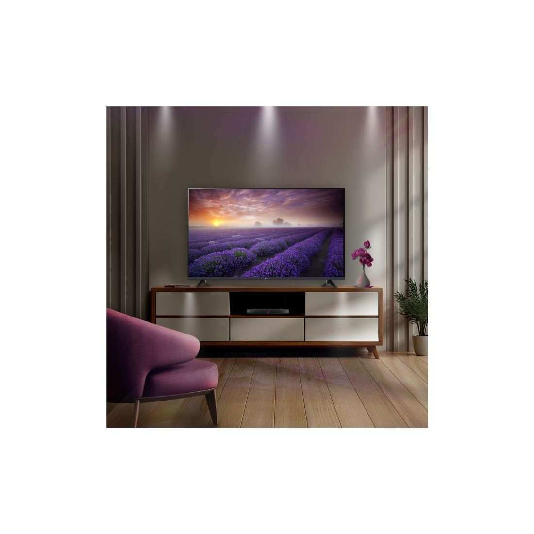 Con acabado en color negro y formato plano, se integra fácilmente en cualquier ambiente. Su estructura compacta lo hace ideal para estancias pequeñas y medianas, sin sacrificar calidad de imagen ni sonido.
