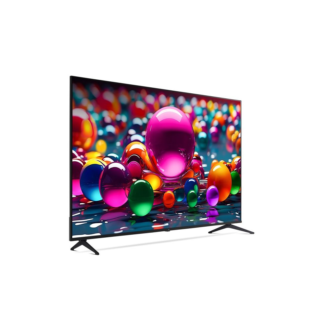 El acabado en color negro y su diseño sin marco hacen que este televisor se integre con elegancia en cualquier salón. Su base de patas aporta estabilidad y estilo, mientras que el soporte VESA permite montarlo en pared si se desea. Es un modelo pensado para destacar sin desentonar.