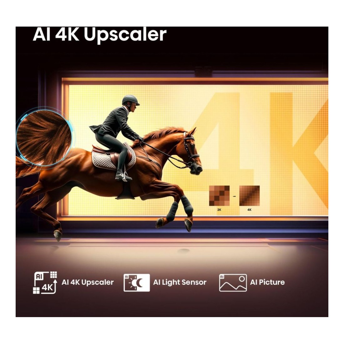 Este televisor de 43 pulgadas con tecnología QLED ofrece una experiencia visual envolvente gracias a su resolución 4K Ultra HD y compatibilidad con HDR10+, HDR10 Plus y HLG. Cada escena se muestra con colores intensos y contrastes profundos, ideal para quienes buscan una calidad cinematográfica en casa.