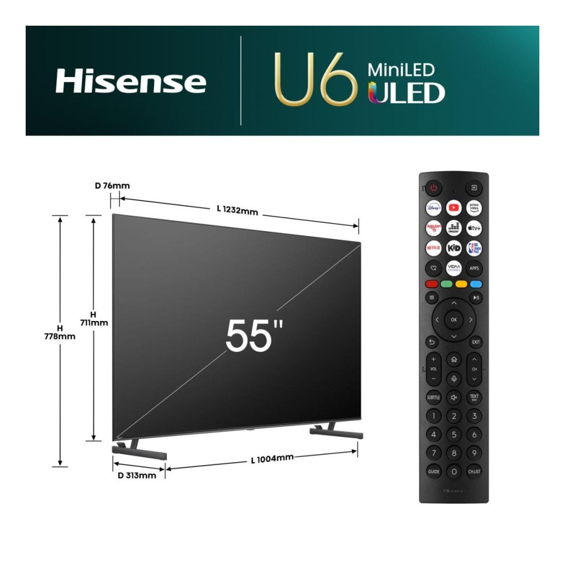 TV ULED - HISENSE 55U6NQ, 55", 4K UHD, Smart TV, HDR